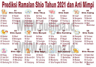 Data Tabel Shio 2021 Lengkap dengan arti Mimpi Daftar Kelompok Angka main Shio Togel 2021 Terbaru berdasar Buku Shio Fengshui Cina. Shio Macan 12 ⇔ Penyakit 24 ⇔ Berani 36 ⇔ Biadab 48 ⇔ Calon Mati 60 ⇔ Sakit Hati 72 ⇔ Keinginan 84 ⇔ Ciuman 96 ⇔ Mendapat Malu . Gambar Shio 2021. Tabel Shio 2021 dan arti Mimpi . Tabel Shio 2021. Shio Togel 2020. Source: pinterest.com. Berikut deskripsi peruntungan 12 shio sampai tahun ke depan bumi ada dalam dampak rasi bintang Tikus. Tabel Shio 2020 Togel Terlengkap. SYAIR TOGEL SYDNEYNIGHT 30 APRIL 2021. Gambar Togel Shio 2021. Penanggalan yang paling akurat dan ajaib pada mana dari dulu ribuan tahun silam hingga sekarang.